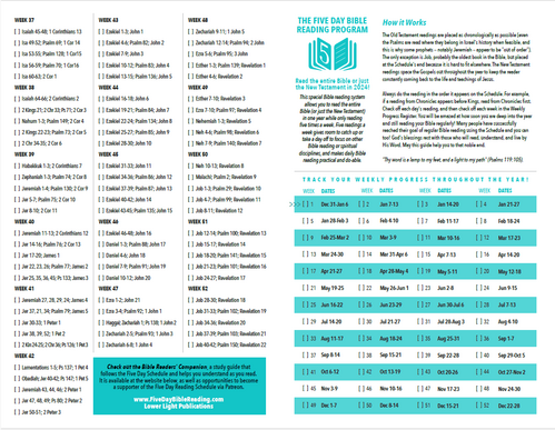 Below you will find The Five Day Bible Reading Plan 2024. You may use and download this plan or choose a reading plan.