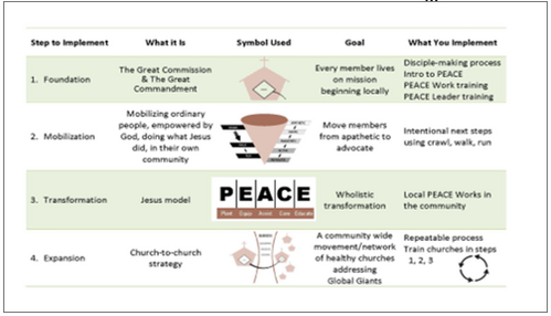 6. The PEACE Plan (at the local church level). Focuses on IMPLEMENTATION (“deep before broad”) ---> develops practitioners (practicing churches).